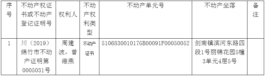 根据德阳市旌阳区人民法院执行裁定书(2024)川0603执恢333号;德阳市旌阳区人民法院协助执行通知书(2024)川0603执恢333号;对以下不动产公告作废。