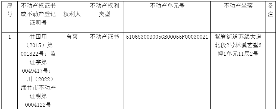根据四川自由贸易试验区人民法院执行裁定书(2024)川0193执恢872号之二;四川自由贸易试验区人民法院协助执行通知书(2024)川0193执恢872号之二;对以下不动产公告作废。