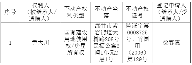 继承不动产登记公告