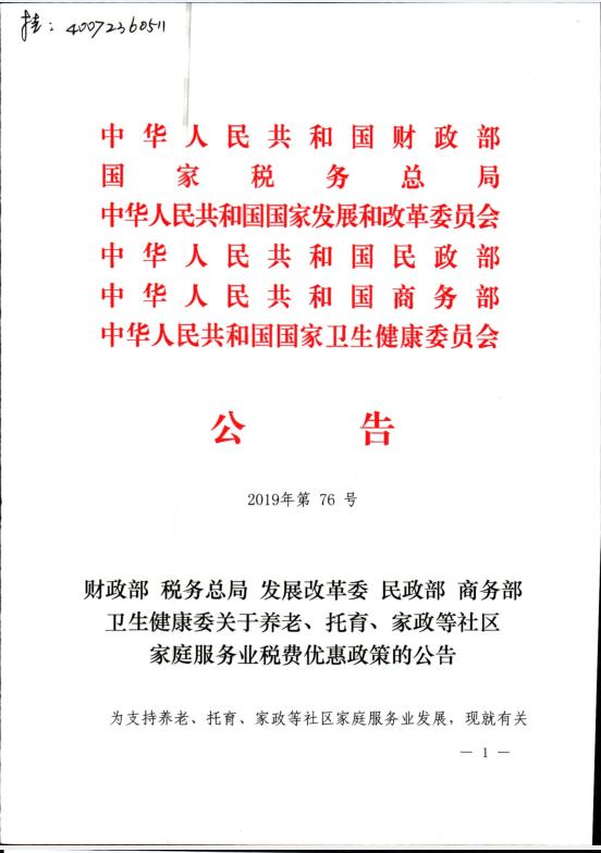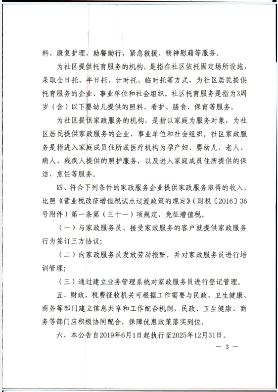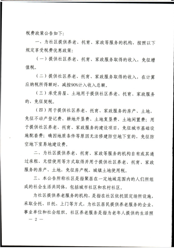 关于养老、托育、家政等社区家庭服务业税费优惠政策的公告