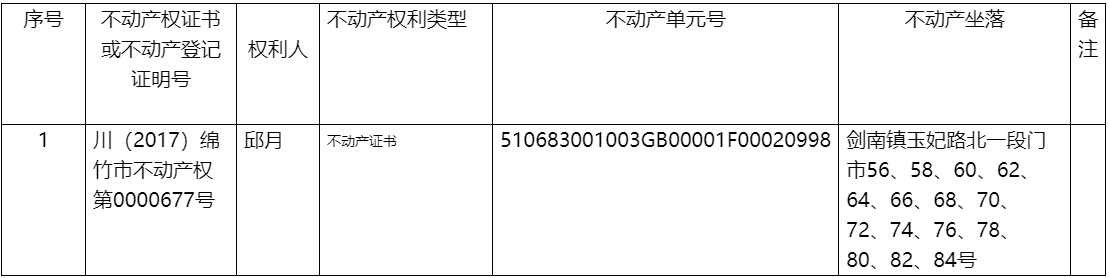 根据四川省绵竹市人民法院执行裁定书(2023)川0683执1078号之二;四川省绵竹市人民法院协助执行通知书(2023)川0683执1078号;对以下不动产公告作废。